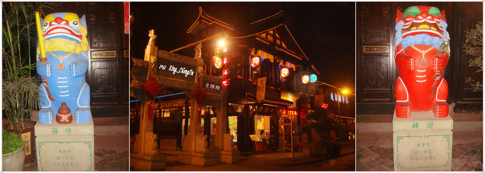 晚上终于和猪汇合啦!洗刷完,去闲逛文殊院,可是太晚的原因,文殊院の店铺几乎关门了,里面的小吃街也都收摊了。我の冒菜,我の串串香,呜呜。。。