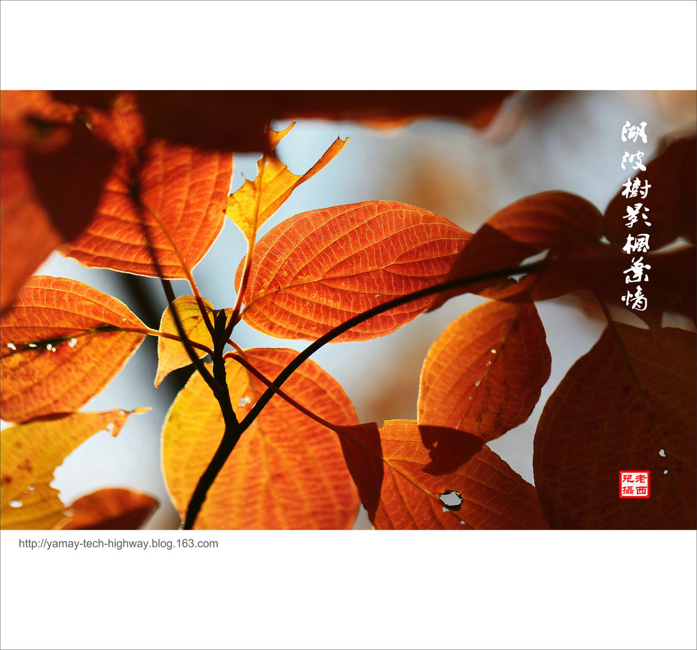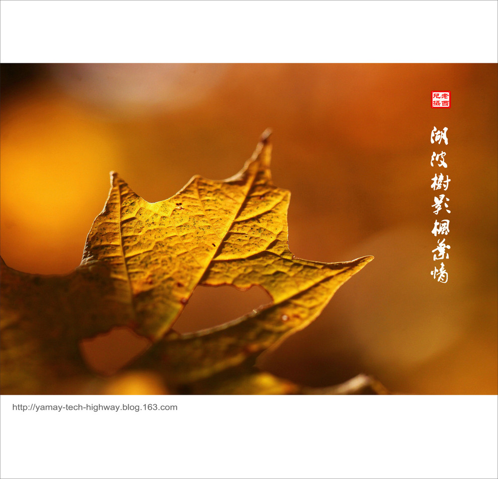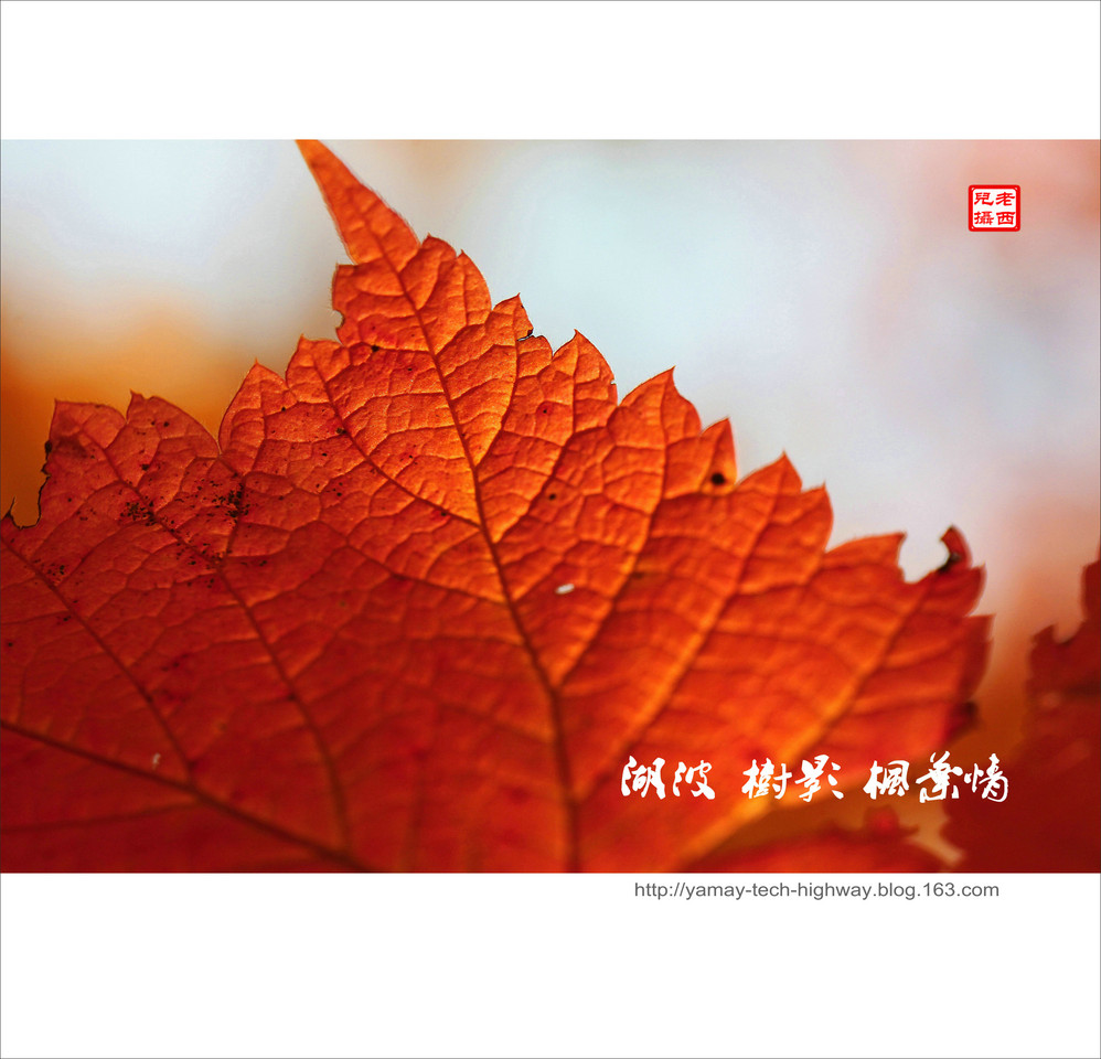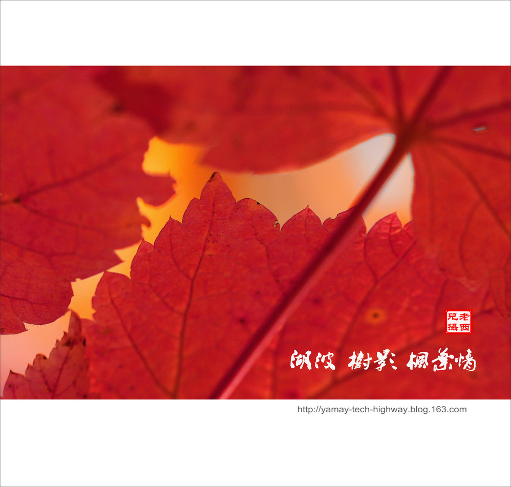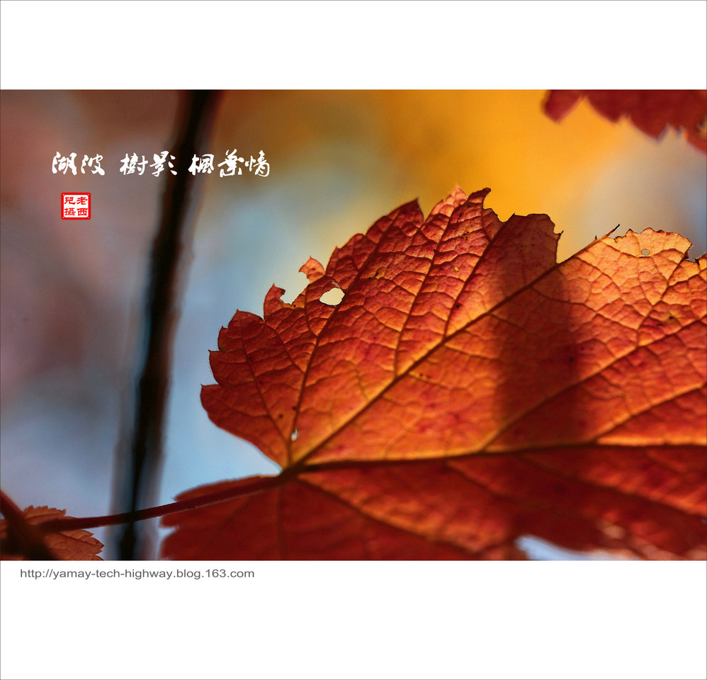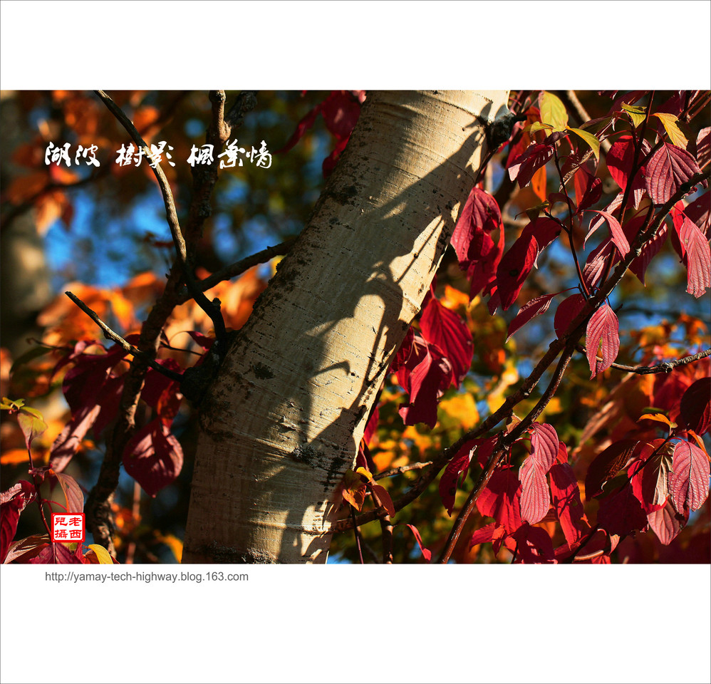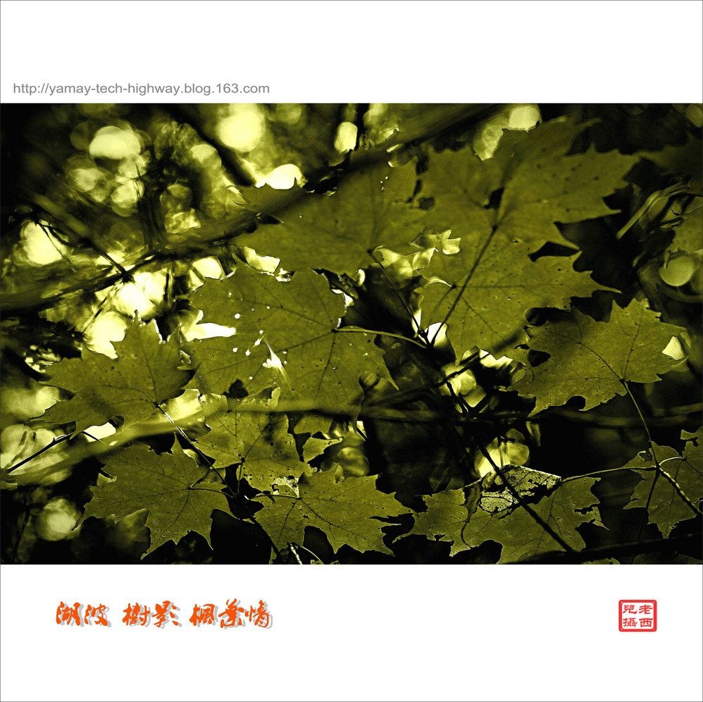 因为枫,秋天的加拿大 是最迷人的,随着秋天脚步的临近,昼夜分明的温差使枫树叶渐渐改变了颜色,从城市到原野都笼罩在一片色彩斑斓中,此时的枫树是最浪漫的主角,他们遥迤着一层层火红嫩黄的枫叶,仿佛在诠释着生命的饱满和收获,接着,漆树、黄杨、山毛榉等先后以深红、鹅黄拉开了金秋的序幕;当这些如马赛 克般红的、黄的、橘红的、褐色、金黄的色彩掩映在碧水蓝天之间,你会惊叹于造物主巧夺天工的创造之举,因为想要创造出这样一副栩栩如生的精彩画面,就连最有功底的艺术家也很难一次泼墨成功 。赏枫,永远是金秋人们最爱的活动,无论是轻松惬意的巴士赏枫、自驾车、徒步旅行、还是骑自行车或者泛舟湖上,你都可以通过不同的方式走近大自然的怀抱,一览秋色的湖光山色!多伦多 向北行驶100公里的 Mono Cliffs ,满山遍野的枫树,枝叶如云,层林尽染,如火如荼,黄的泛着灿灿的金光,红的像不灭的火焰……斑斓炫目的色彩,让人目不暇接,我踩踏着满地干枯的枫叶,穿梭于枫林之中,用镜头追逐着枫叶的神韵和激情。高大挺拔的枫树扎根于山石的缝隙,遒劲有力,被霜风染得火红的枫叶,像有着无穷无尽火焰一般澎湃不息的激情在寂寂的山野中蔓延,染红了整片山野,也染红了萧索落寞的深秋;金色的阳光在叶间熠熠闪烁,一幅幅美丽的秋色图让人疑幻疑真。