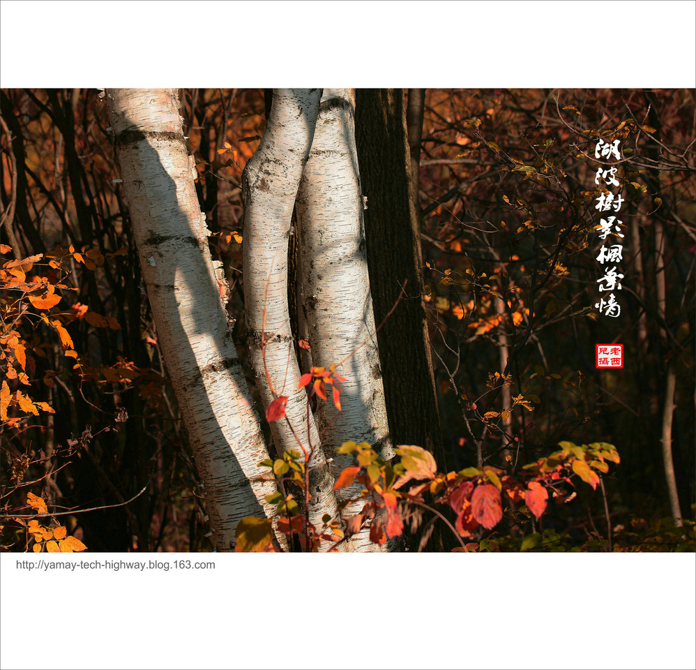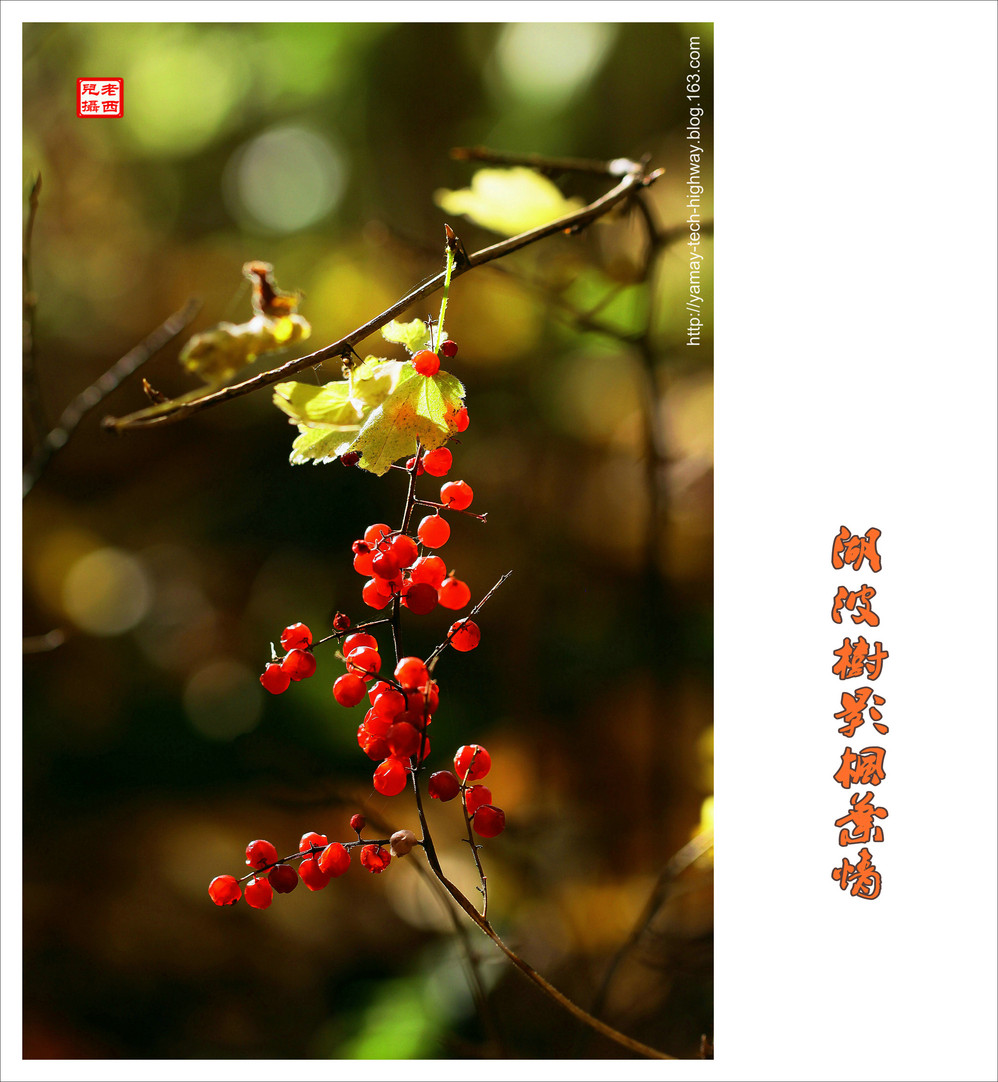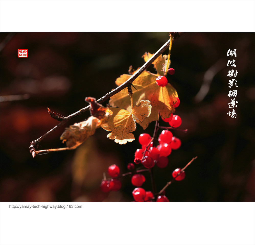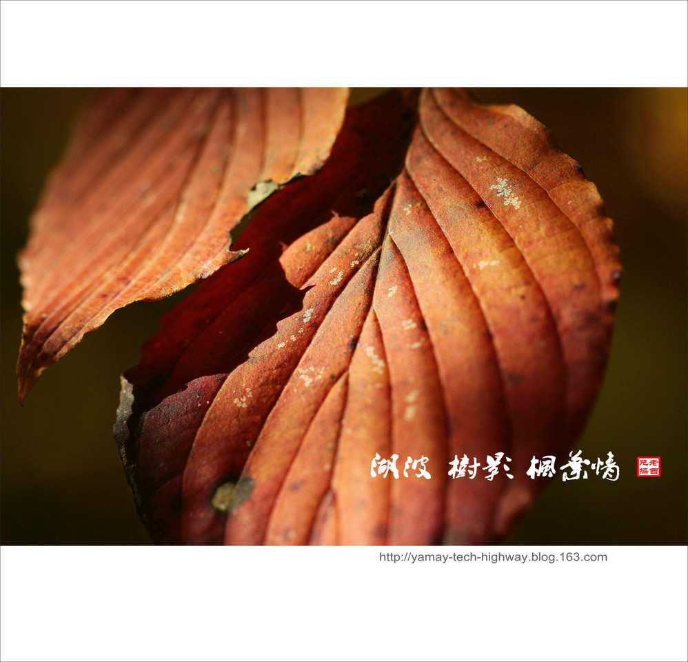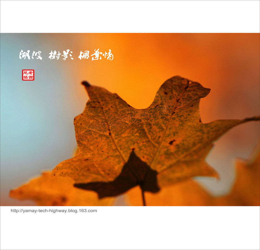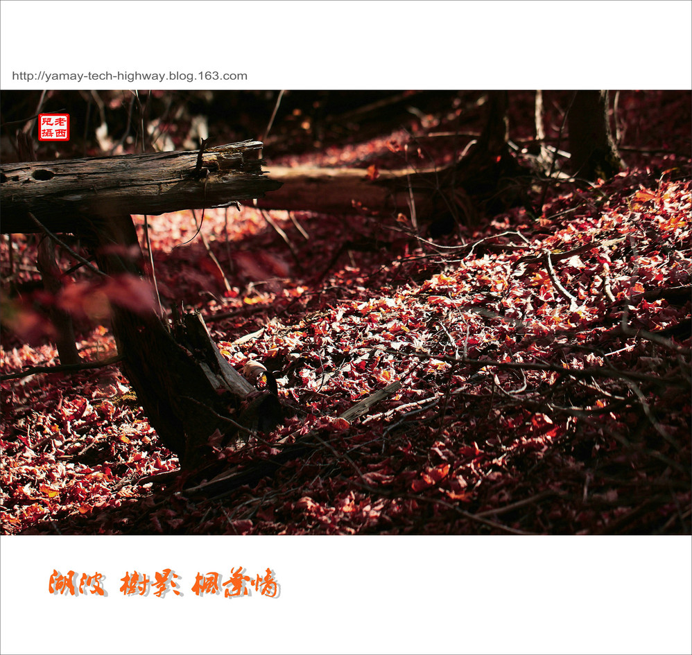 因为枫,秋天的加拿大 是最迷人的,随着秋天脚步的临近,昼夜分明的温差使枫树叶渐渐改变了颜色,从城市到原野都笼罩在一片色彩斑斓中,此时的枫树是最浪漫的主角,他们遥迤着一层层火红嫩黄的枫叶,仿佛在诠释着生命的饱满和收获,接着,漆树、黄杨、山毛榉等先后以深红、鹅黄拉开了金秋的序幕;当这些如马赛 克般红的、黄的、橘红的、褐色、金黄的色彩掩映在碧水蓝天之间,你会惊叹于造物主巧夺天工的创造之举,因为想要创造出这样一副栩栩如生的精彩画面,就连最有功底的艺术家也很难一次泼墨成功 。赏枫,永远是金秋人们最爱的活动,无论是轻松惬意的巴士赏枫、自驾车、徒步旅行、还是骑自行车或者泛舟湖上,你都可以通过不同的方式走近大自然的怀抱,一览秋色的湖光山色!多伦多 向北行驶100公里的 Mono Cliffs ,满山遍野的枫树,枝叶如云,层林尽染,如火如荼,黄的泛着灿灿的金光,红的像不灭的火焰……斑斓炫目的色彩,让人目不暇接,我踩踏着满地干枯的枫叶,穿梭于枫林之中,用镜头追逐着枫叶的神韵和激情。高大挺拔的枫树扎根于山石的缝隙,遒劲有力,被霜风染得火红的枫叶,像有着无穷无尽火焰一般澎湃不息的激情在寂寂的山野中蔓延,染红了整片山野,也染红了萧索落寞的深秋;金色的阳光在叶间熠熠闪烁,一幅幅美丽的秋色图让人疑幻疑真。
