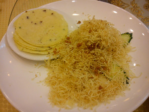 因着十一长假,提前一天也订不到扬州的房了,想如果去了订到房就住一晚,如果没房连夜赶回上海。到了,想碰碰运气在瘦西湖旁再问,答曰半个月以前就没房了,呵呵,我们只好先抓紧时间吃顿晚饭。
