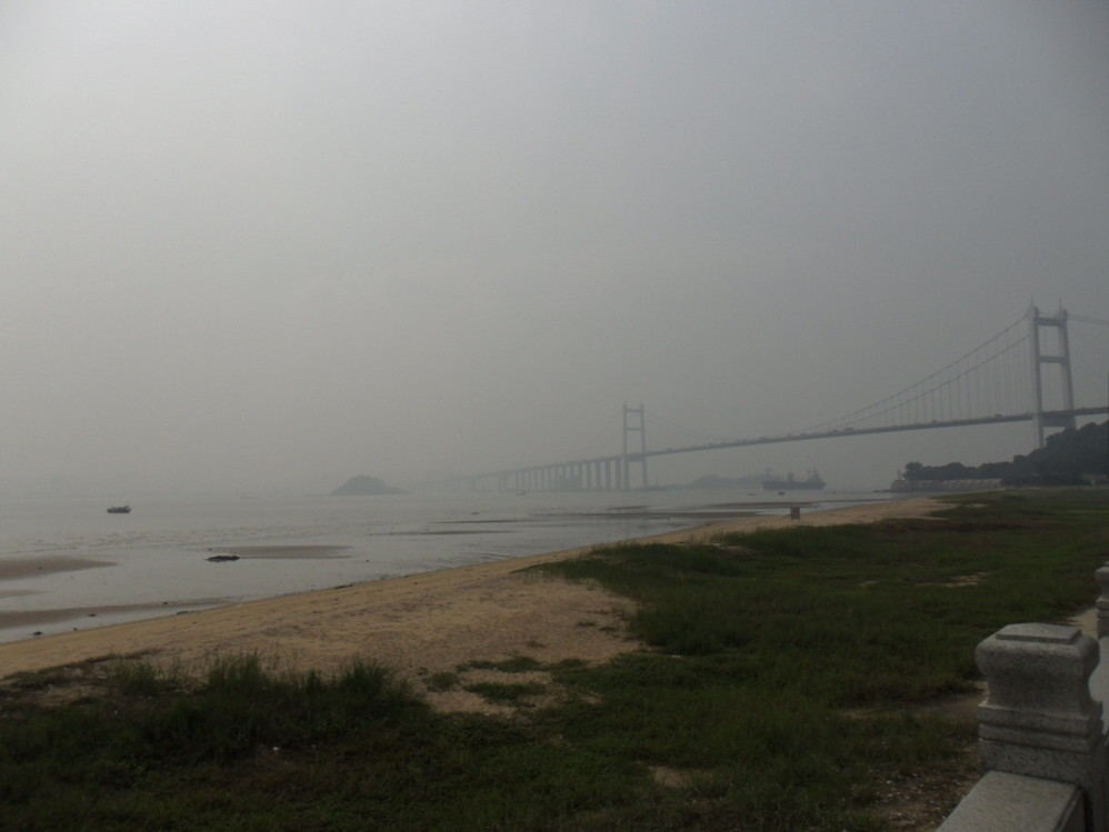 到了虎门 直接坐车来到第一个目的地威远炮台,一下车可以直接看到号称中国 第一悬索桥的虎门 大桥,东莞 的海就不做评价了。