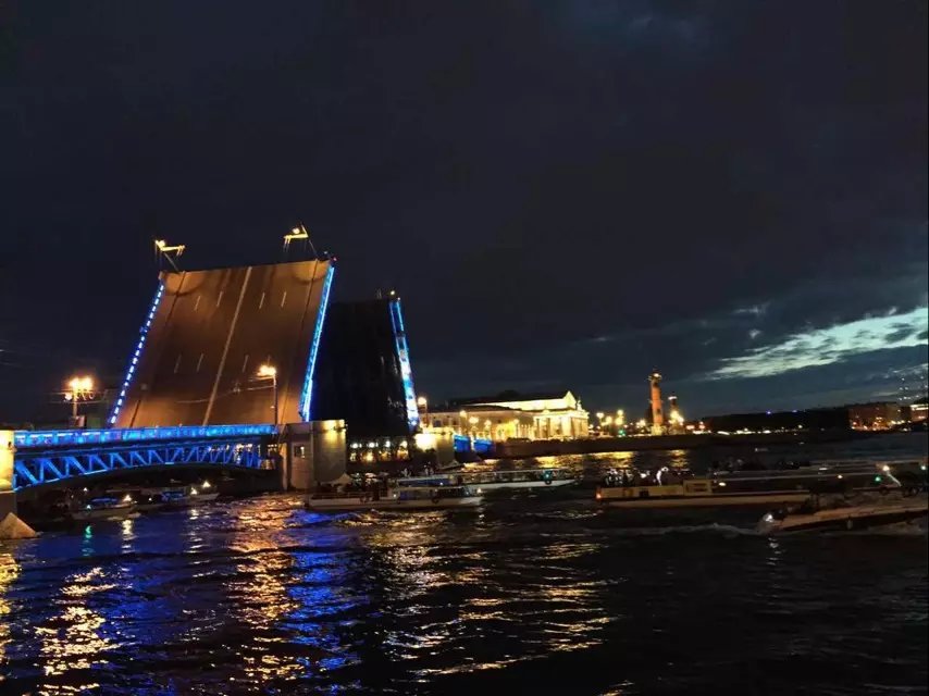 来圣彼得堡不看开桥真的会遗憾哦,每个桥都有自己开的时间,冬宫桥的开侨最出名,1点10分左右开,到2点50合上,所以最好12点左右过去,这样人少可以占到好位置拍照,哈哈哈。6月22日,夏至去看开桥更合适,圣彼得堡的别名为白夜城,天一半黑一半亮,真是美极啦!