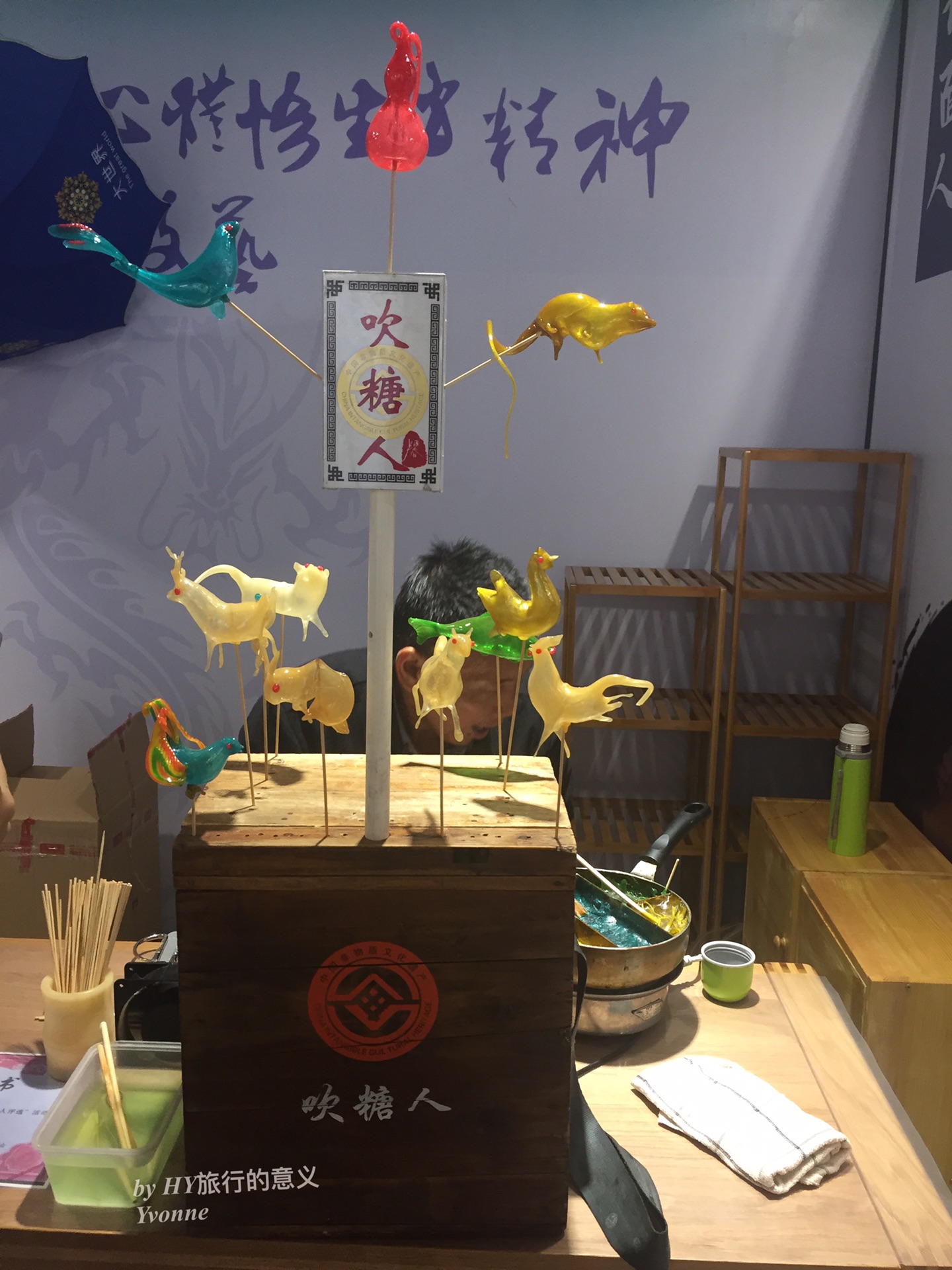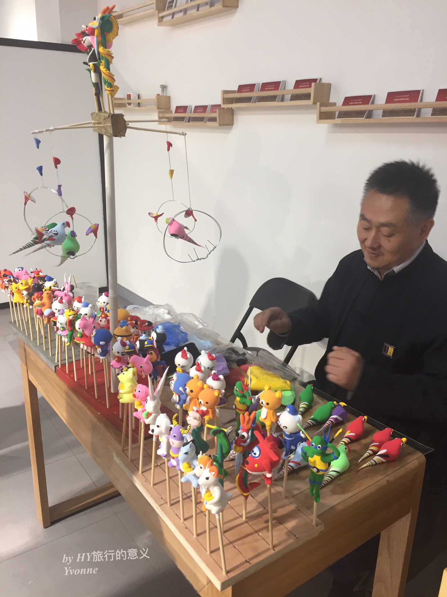 捏面人,和小时候的材质不一样了,虽然说都是用面粉做,但现在的放多久都不会干,还很有弹性,好像是30元/个。