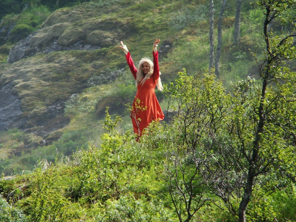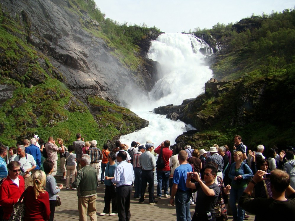 “挪威微缩游“火車最著名的景点,要算是克柔絲佛森(Kjsofossen)瀑布,火车在克柔絲佛森瀑布前会停车几分钟,让游客下车和瀑布合影。瀑布水量丰沛如万马奔腾,轰隆轰隆的水声,震耳欲聋,水花飛濺,沾衣欲濕,会碰上当地旅游局安排的扮成精灵的美女表演。