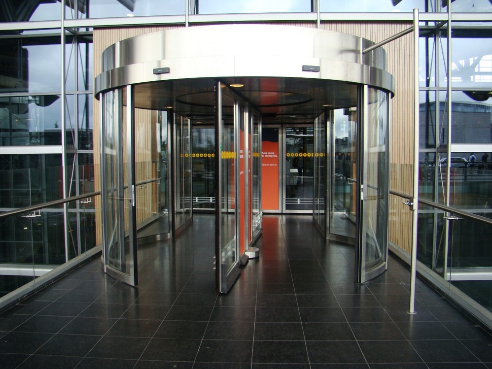 由于挪威冬天很寒冷,机场的大门采用特大旋转门,里面还有自动开关门,双重保温。