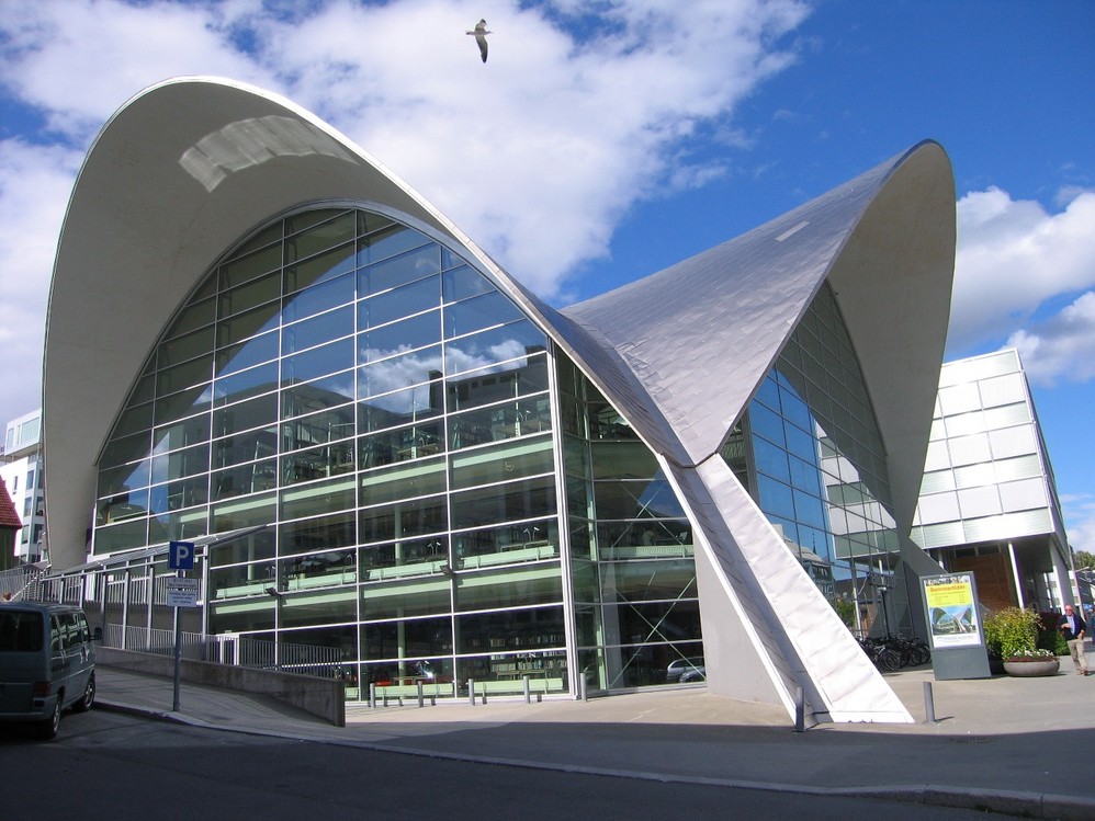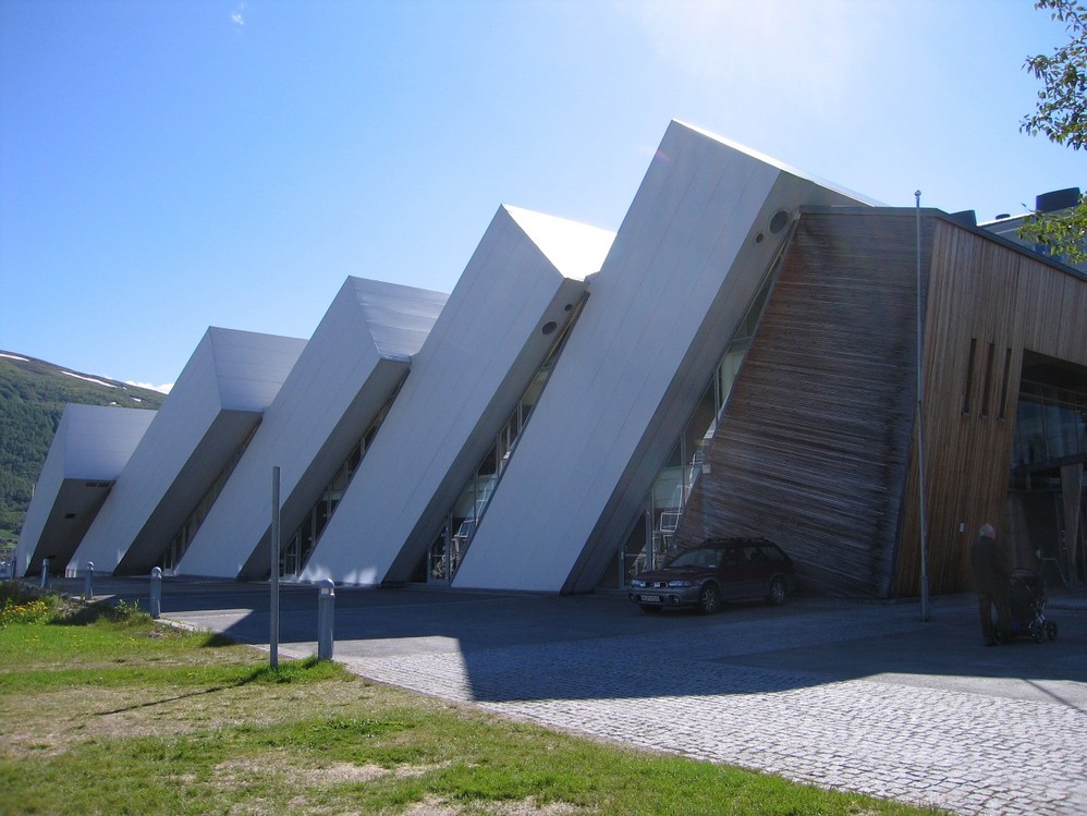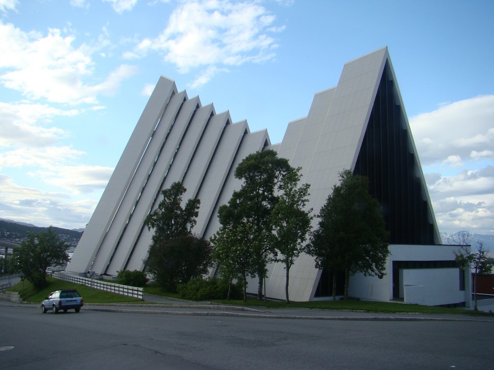 北极大教堂,建于1965年的现代感建筑,用重达6吨的彩色玻璃为设计主材料,演绎了北极之冬和极光的主题。