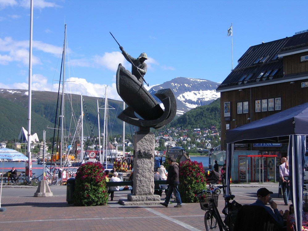 为了观赏北极的极昼,我们特意安排从奥斯陆飞往挪威北部的特罗姆瑟,在那里度过一整天。特罗姆瑟位于北纬69"40'(北极圈位于北纬66"34'),是北部最大的城市,也是世界上最北端的大学城。特罗姆瑟四周是白雪皑皑的雪峰,映衬着整个城市梦幻一般的美丽。