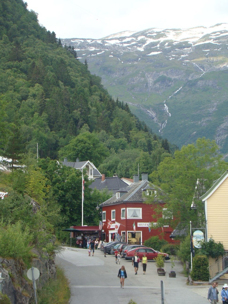 峡湾(/poi/6557898.html)游船到达终点弗洛姆(Flam),十多万顿级的豪华邮轮可轻易停泊,带来了一批批飘洋过海的世界各国游客。弗洛姆是“挪威微缩游“火車即高山火车的折返点,火车站就在松恩峽湾旁,隐藏在三面雪山环拥的艾于兰峡湾(/poi/6557898.html)的尽头.,Flam铁路是北欧最陡峭的标准轨距铁路线,也是世界上最具影响力的山区铁路,车厢玻璃宽敞景色尽入眼帘。