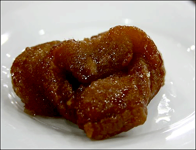 糖耳朵(蜜麻花) 蜜麻花是北京 小吃中常见名品,又称糖耳朵,因为它成形后形状似人的耳朵得名。蜜麻花棕黄油亮,质地绵润松软,甜蜜可口。
