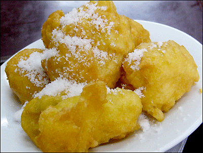 奶油炸糕 北京 小吃中奶油炸糕是富有营养的小吃品种。奶油炸糕呈圆形,外焦里嫩,香味浓郁,富有营养,易于消化。