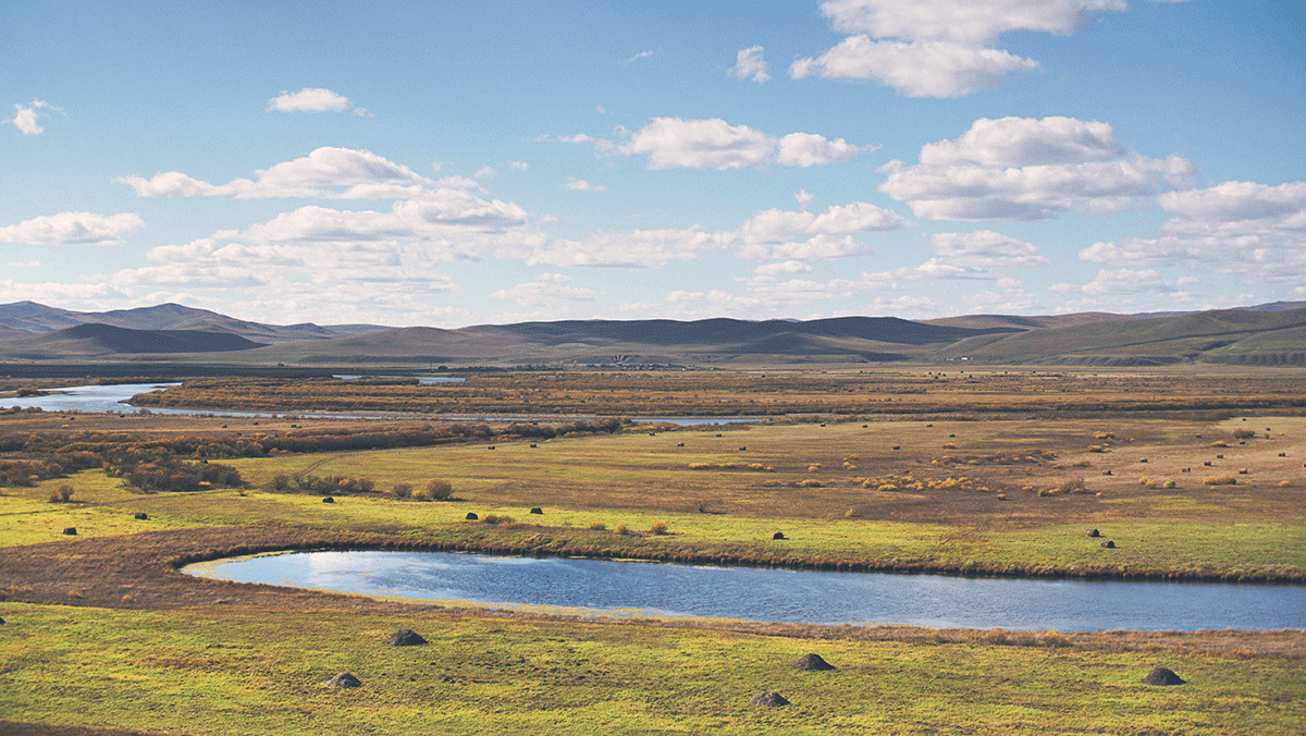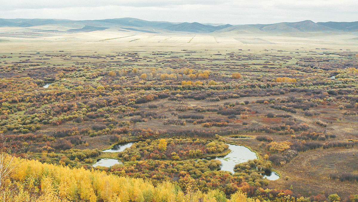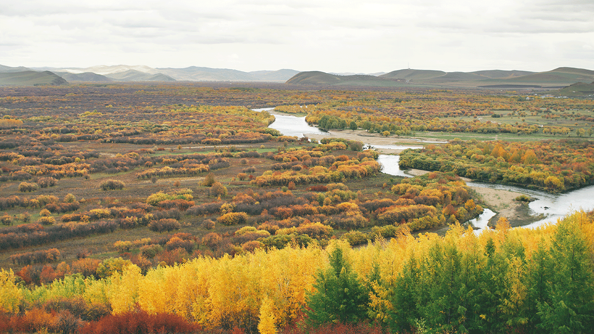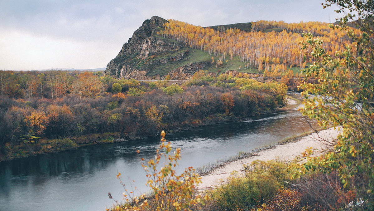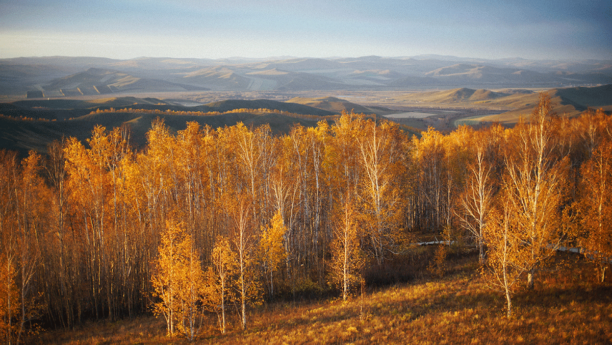 这次,是在海拉尔。跟绝大多数国内航班不同,你看到的不是千篇一律的田地、郊区和城市,而是一望无际的草原。草原上有无尽的秋林,还有蜿蜒的莫日格勒河。飞机转个弯,舷窗外的河水就被折射出不一样角度的光斑。