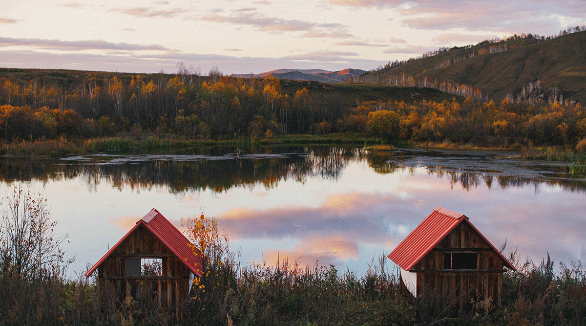 下了飞机,从海拉尔往额尔古纳走,会经过大片的陈巴尔虎旗的草原。莫日格勒河就在上面曲折地爬行。第一天的时候,我们还不知道应该走辅路,不知道应该找一个山坡从高远望九曲十八弯,我们只顾闷头从主路开到了所谓的「金帐汗」景点。九月的金帐汗,非常不推荐,因为淡季,蒙古包都关了,走马观花都用不着,草原辽阔,原地一眼就望完这个景点。