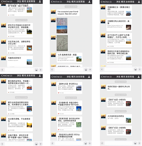 说到根河,必须提一下友安宾馆的老板。这可能是我见过最热情的老板了。我们出发前不小心管老板借开水泡了碗泡面,老板便开始了极为热情的旅游景点介绍,从前三代山东搬到内蒙的历史,到根河松花江额尔古纳河的支流关系,最后加了微信,给我发了整整一个下午的景点介绍。