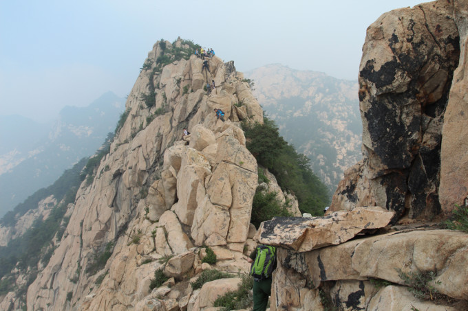 东御道出发---跨直沟湾---越刀刃峰(恐龙背)---绕西马峰---到观日台---至天街岱顶!
