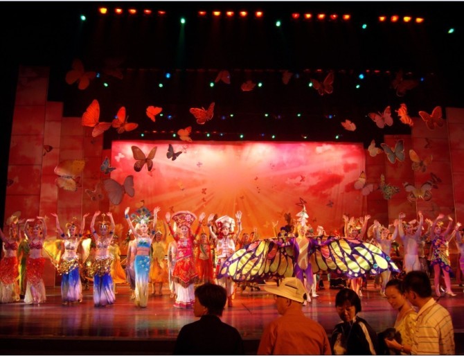 晚上可以去看看当地出名的表演,能展示当地风俗的“蝴蝶之梦,门票前5排200元,说实在没西双版纳 的表演好看,就看看现场拍的照片吧,