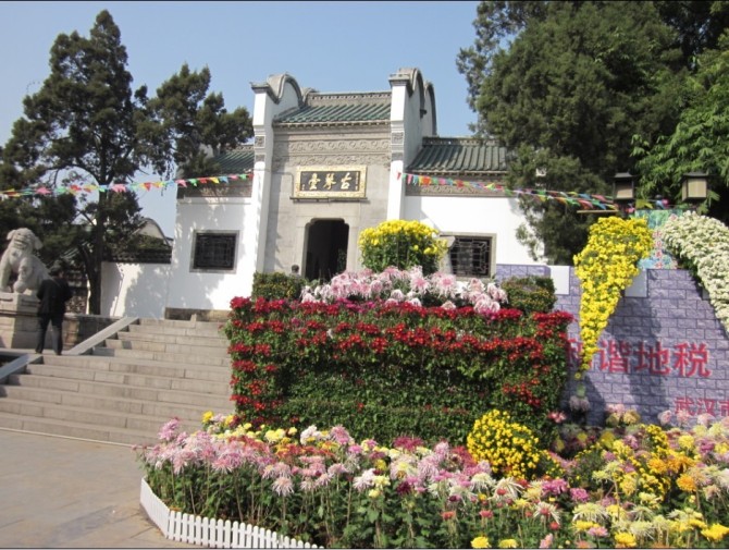 菊花特别多,很多旅行社的都集中在这出发,关于古琴台的来由:又名伯牙台,相传,古时有位名叫俞伯牙的琴师曾龟山脚下弹琴抒怀,山上的樵夫钟子期听懂其志在高山和流水,伯牙便视子期为知己。几年以后,伯牙又路过龟山,得知子期已经病故,悲痛不已的他便将琴摔碎,发誓从此不再弹琴。琴台主殿前的汉白玉 方型石台 相传就是伯牙抚琴处。园内布局精巧,三面环水,遥对龟山,修建者充分利用地势地形,把龟山、月湖山水巧妙借了过来,构成一个广阔深远的艺术境界。琴台始建于北宋,后来屡毁屡建,光绪十六年(1890年)又一次重建。