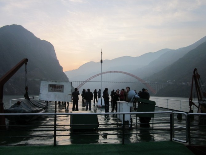 2010年11月11日,早上主要还是开船回到宜昌 ,早上没活动,7点半吃完早餐后,洗了个头就到甲板上听导游介绍回程的三峡 风景,会经过长江三峡 最出名的神女峰。