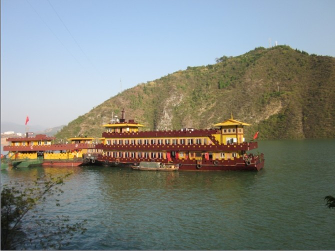 现在我们已经看不到古栈道了,古栈道是一个迷,它在现在长江三峡 70米以下,其实不止是古栈道,以前长江三峡 70米以下是住有人家的,但是没有三峡 大坝防洪,这里经常有水灾,每次有洪水就把武汉 城给淹没了。长江三峡 的低下有着古老的迷,就像海底世界一样,让人联想到沙漠底下的古楼兰城!!导游说以前能看到古栈道的时候是佩服它的工程,以以前的技术那么落后的时代竟然能建出那么好的古栈道,关于它如何建成建于何时仍是一个谜!!
