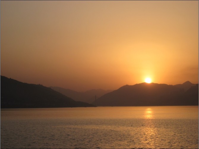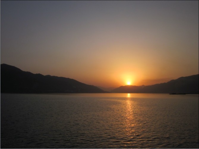 上船后我们再由观光船载着我们回到我们睡觉的游轮上,时间过得好快,很快就到傍晚了,长江三峡 的日落更是另一番风景,我在船上房间往外面拍了长江三峡 的日落