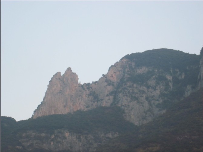 这幅就是神女峰,看不出来其实最细小看起来像一个手指那么大的才是神女像吧,这个我是用相机拉近距离从远处拍的,山在很高,其实那个看似很细小的神女像其实有6米高,看不出来吧。