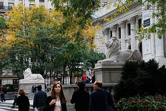 位于5道和42街交汇之处的公共图书馆始建于19世纪,是世界知名的图书馆。令我相当欣赏的是,纽约 把最中心的位置留给了图书馆。之前有提到过42街是纽约 南北两分的主道(arguably),而5道则是纽约 东西两分的主道了(因为5道往西,都是West XX St. 而5道往东则是East XX St. 而5道嘛,就是名店林立的道道,以后的游记中会我会介绍一下。)所以42街5道的交汇之处就很特殊了(遗憾的是,竟然没有拍下42街和5道交汇之处的指示牌)。