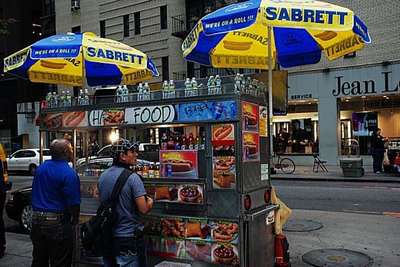 热狗在纽约 的地位绝对可以比肩在上海 的四大金刚(另外三君可以说是Bagel,cheese cake和pizza. Michigan的诸君有木有吃全纽约 的四大金刚呢?)。而纽约 人喜欢用木瓜汁和这热狗吃,所以就会有很多带有Papaya字样的热狗店。最有名的也许是Gray’s Papaya,可惜这次时间太赶,木有得偿所愿。不过纽约 街头的Sabrett也是著名的热狗连锁店。当提到热狗,王律师特意说一定要吃那种街边的热狗,也许指的就是Sabrett吧。