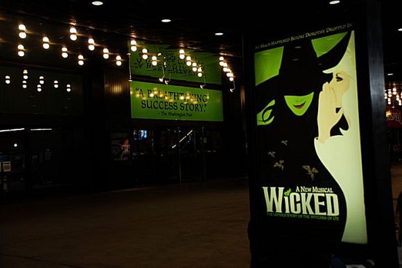 晚上在百老汇的Gershwin Theater看了Wicked,坐在第一排的感觉相当的奇特,因为演员就在你身边表演,会有些意想不到的效果。另外,很遗憾地被告知《猫》由于票房惨淡,已不再百老汇上演了。纽约 就是这么个残酷的地方,今天也许你在世界之巅,明天也许就会是阶下之囚。另外Wicked相当赞,推荐。