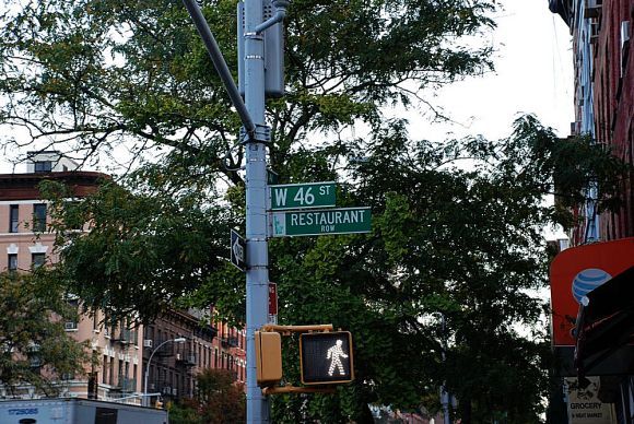 西46街的另一块指示牌-“Restaurant Row”,纽约 再一次向我展示了他们的直接,一绺的餐馆。