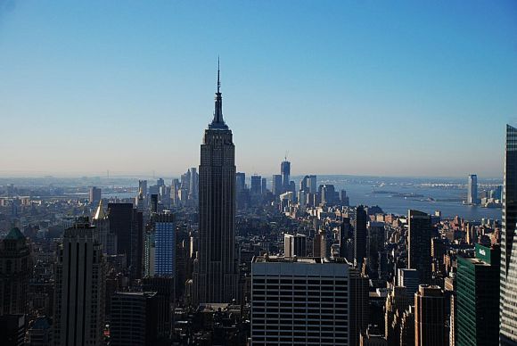 曼哈顿 清晨,中间那幢是帝国大厦,这幢Art Deco风格的大楼仅用了14个月就竣工了,应该算是建筑史上的一大奇迹。