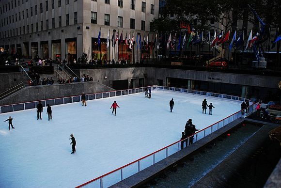洛克 菲勒中心下的冰场是纽约 人最喜欢的娱乐场所之一。