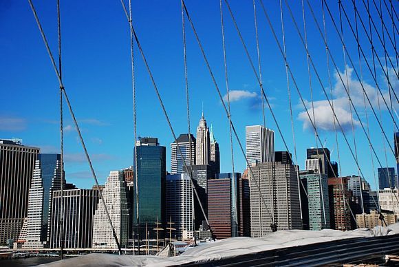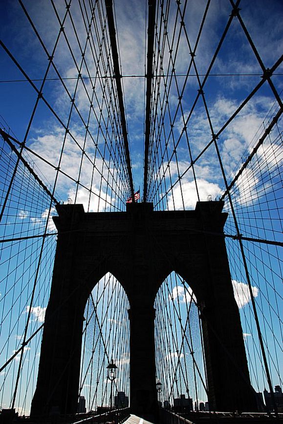 Brooklyn Bridge是世界上有名的斜拉大桥,连接着Brooklyn和曼哈顿。这桥的建造基本上就是个美国版的愚公移山。
