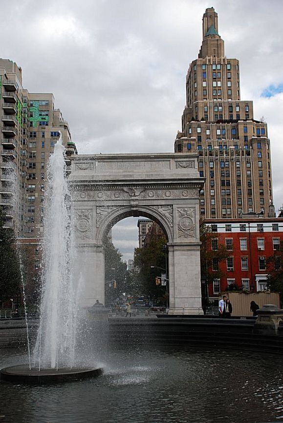 坐落于NYU附近的Washington Square也是在美剧中常常出现的建筑,是NYU学生出没之地,也是住在Greenwich village的村民小憩之所。从这个角度透过Arch能看到帝国大厦。