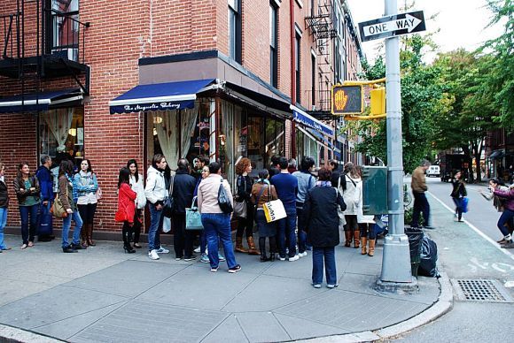 出市场,走回Bleecker St,看到街角处的Magnolia Bakery,这家店的cupcake是全纽约有名的,所以门前常常排起长队。