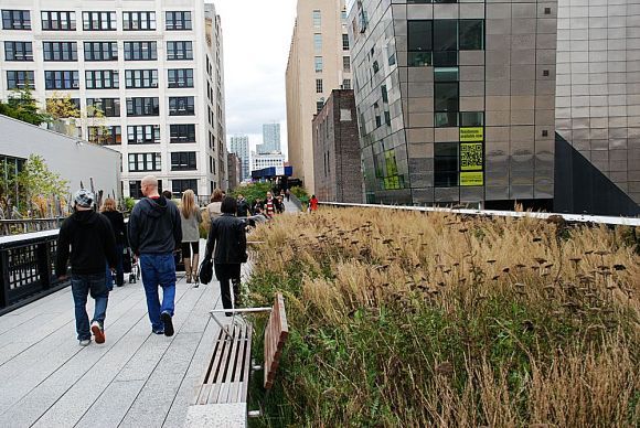 高线公园算是纽约的新兴 景观区,公园里漫布小景,是游人驻足小憩的理想之所,而步行通道 两旁的建筑风格也颇为现代。能将一条废弃的铁路构想出一个狭长蜿蜒的公园,可见DS+R事务所的功力。