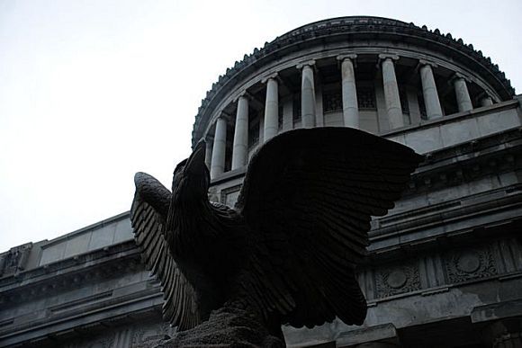 再往西走,就是General Grant National Memorial,很肃穆,纪念堂采希腊的陶立克柱式,更显将军本人的轩昂有力。General Grant大家也许不一定熟悉,但此人却是美国人心目中的关二爷,是他终结了南北战争,也是他第一次提出“无条件投降”这个概念,所以美国人把他头像印在50美元的钞票上(话说,有哪位同学见过50美元的真身?)。除此,Grant先生还顶着另外一个更光鲜的头衔---美国第18任总统,但作为总统,Grant资质平平,所以大家更喜欢称其为“格兰特将军”。