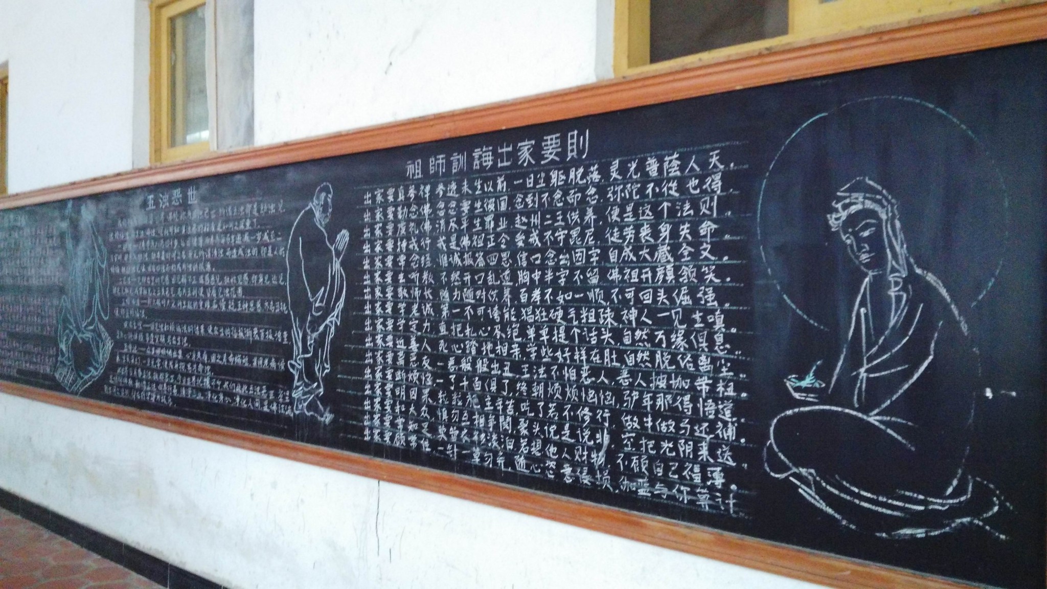 我们去的时候,支提寺正在建设前面的大殿,所以无法拍到寺庙的景象。但寺庙墙壁上的黑板报确实独具风格,我在其它寺庙还未曾见到过,感叹于寺内僧人的才气,也勾起学生时代的美好记忆~~