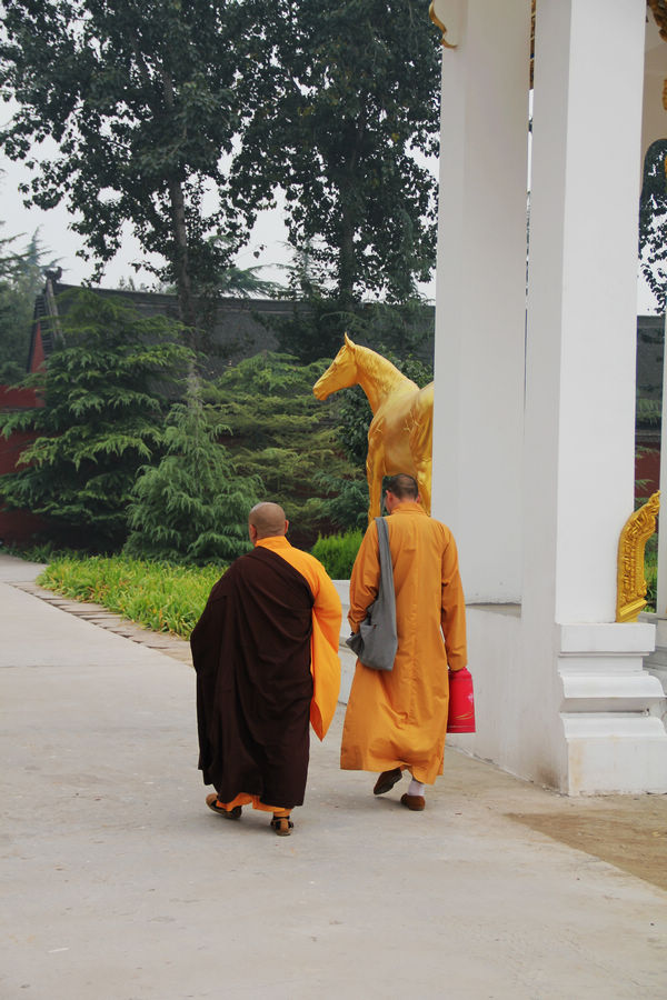 我到白马寺的时间正好是阴历初一,上香的香客熙熙攘攘络绎不绝,看着烟雾缭绕中一张张虔诚的面孔,让我也不禁放慢了脚步,在这一千九百年前建造的古刹内慢慢浏览,细细品味。