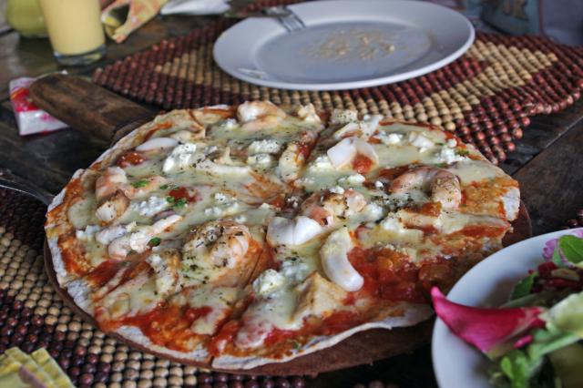 薄荷岛上有家很有名的餐厅叫做Bee Farm(蜜蜂农场),看各种攻略包括LP,基本上都是交口称赞。这里其实是个有机农场,自产自销。在这里要了个披萨,味道不错,印象深的还有个水果沙拉,上面摆满了鲜花。