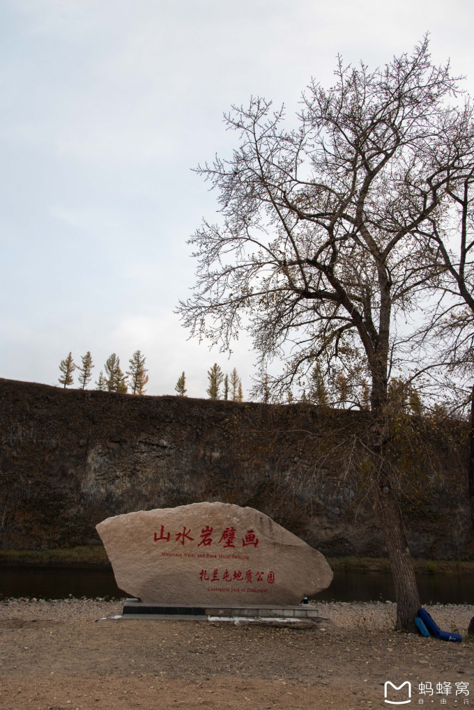 今天开始我们正式的旅行。早上6点左右从哈尔滨出发,目的地是柴河的山水岩壁画露营地。由于气温太低,仅在露营地搭了帐篷玩耍一番,便回柴河住了。起初,沿途的景色比较荒凉,直到金黄的树木出现。