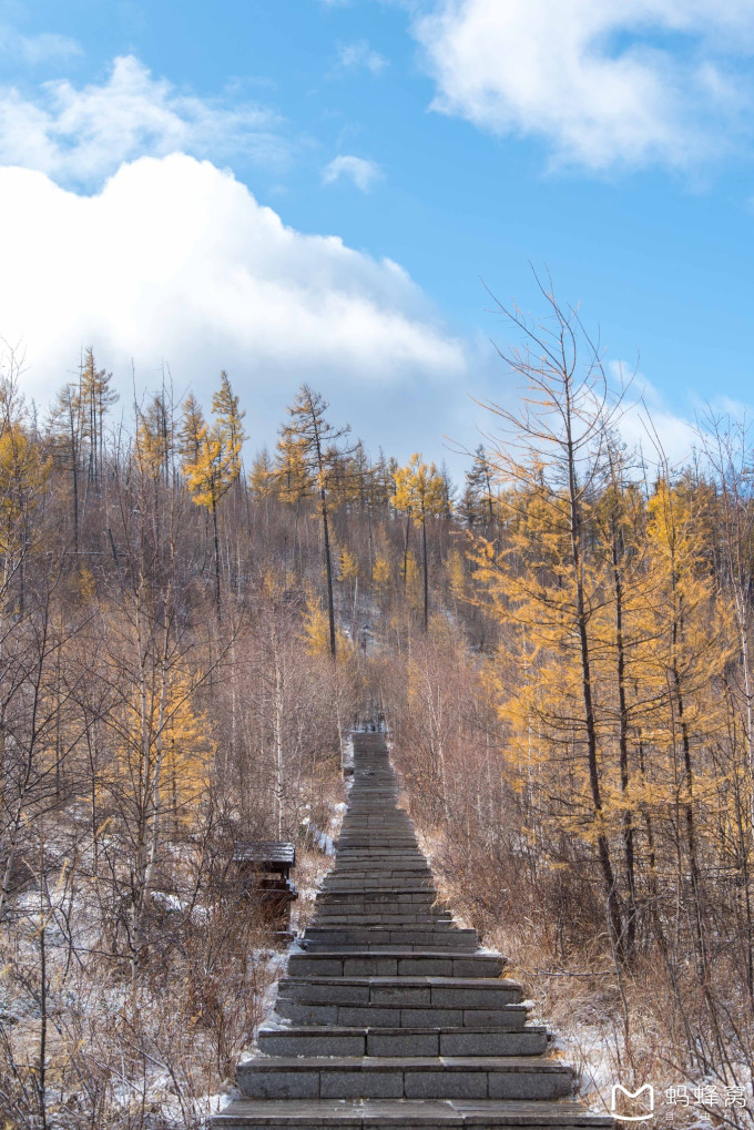 阿尔山的景色绝对是旅途中最美的,秋天的阿尔山更是美不胜收,更何况是雪后的金黄阿尔山!!约莫9点,我们到达阿尔山森林公园,阴沉的天空飘着小雪。
