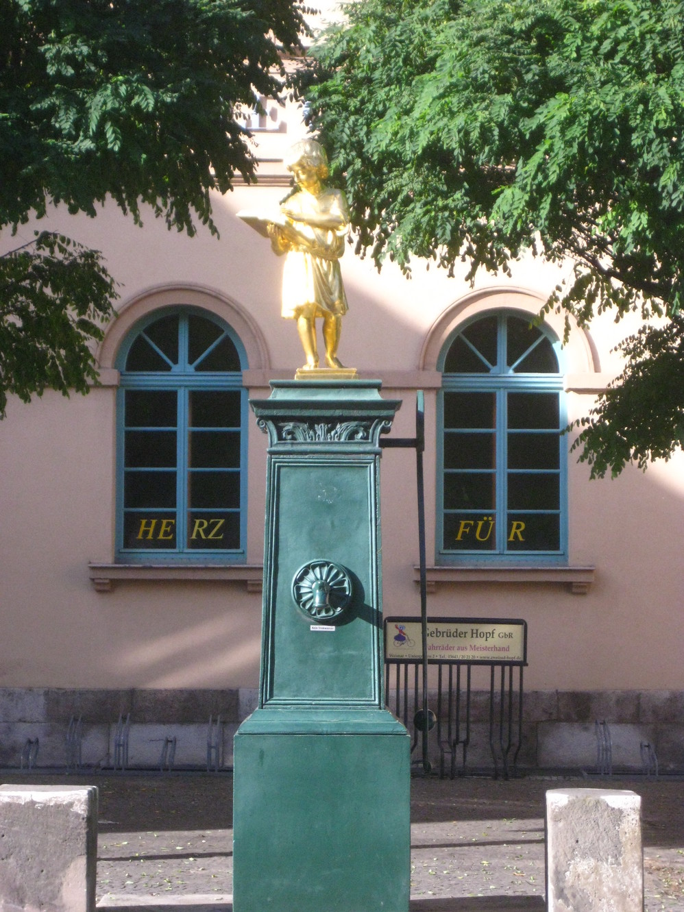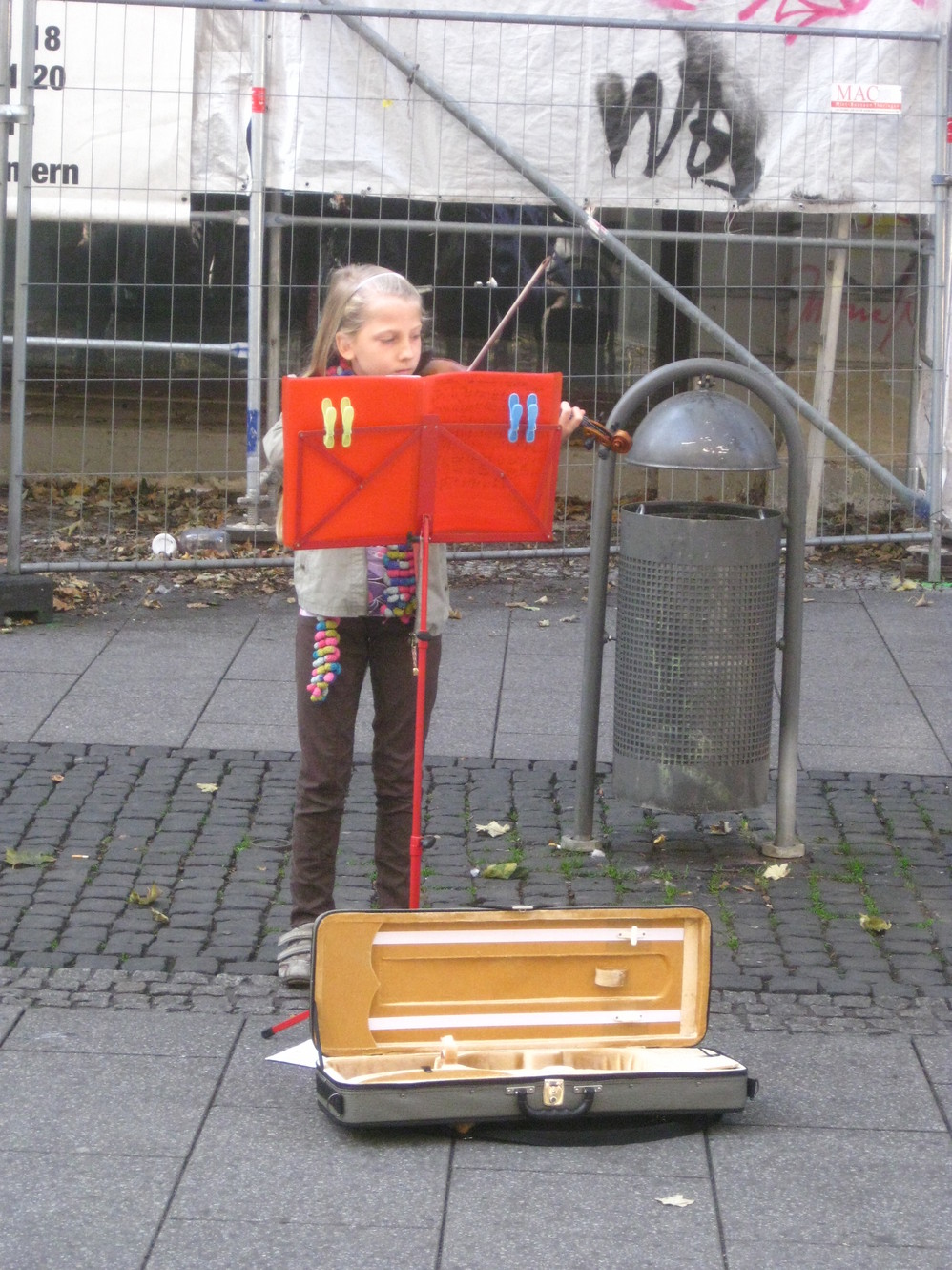 从剧院广场往前就可以进入席勒大街,著名的席勒故居 就在这条街上,路上一个小女孩在卖艺。
