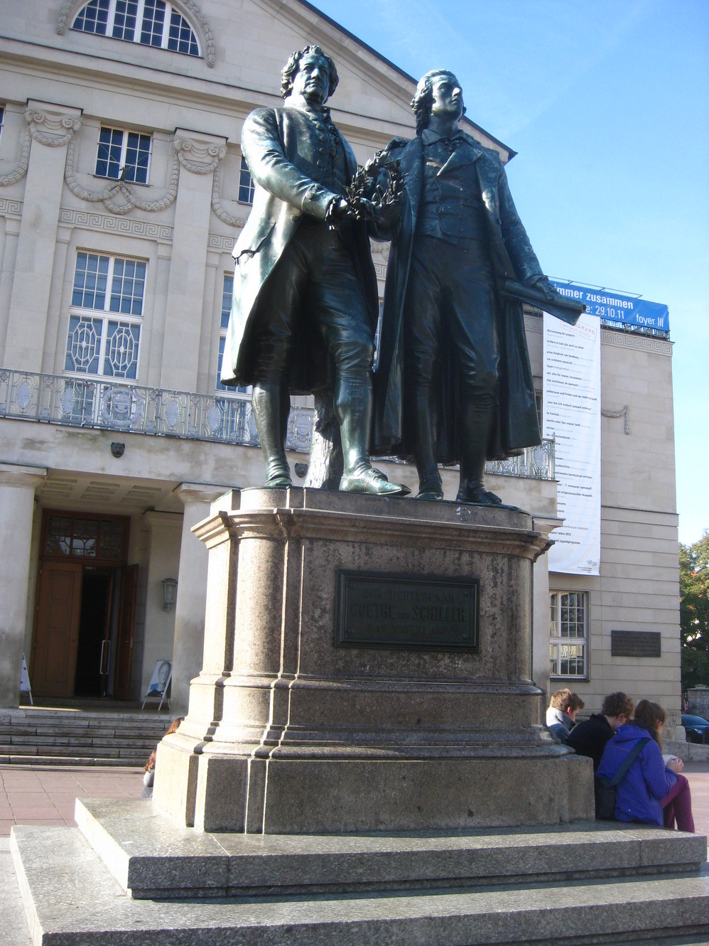 歌德和席勒纪念像是魏玛 的城市标志,由恩斯特·里彻尔 在1857年完成。