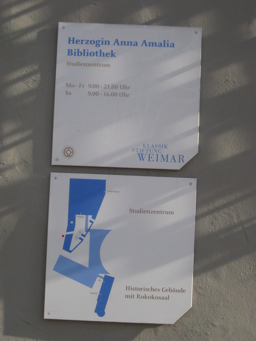 女公爵安娜·阿玛丽亚图书馆。 这座1570年原来的寝宫“绿宫”,位于民主广场的东侧,在1691年被女公爵安娜·阿玛丽亚改建为图书馆。歌德看管这里的图书一直到1819年。 书籍在文艺复兴 大厅展出,这座洛可可式大厅可以被参观。直到1991年,图书馆才根据它的创建人来命名。2004年9月2日这座历史性建筑及其洛可可式大厅和无数的藏书及油画被毁于一场大火。