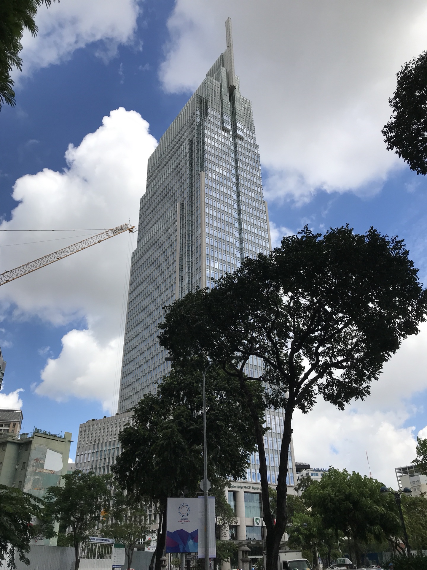 酒店对面的高楼,这在越南首都河内是很少看到的。