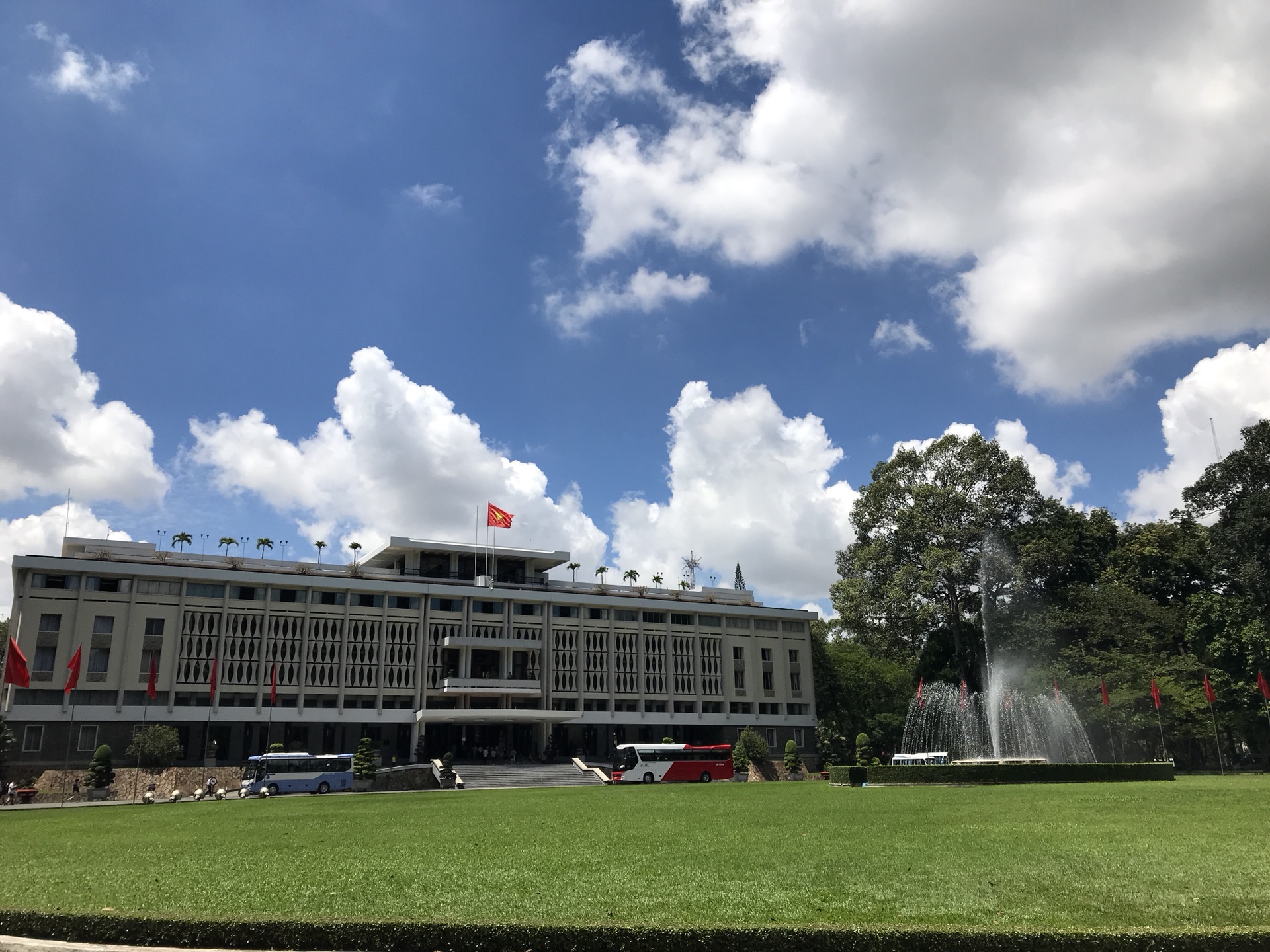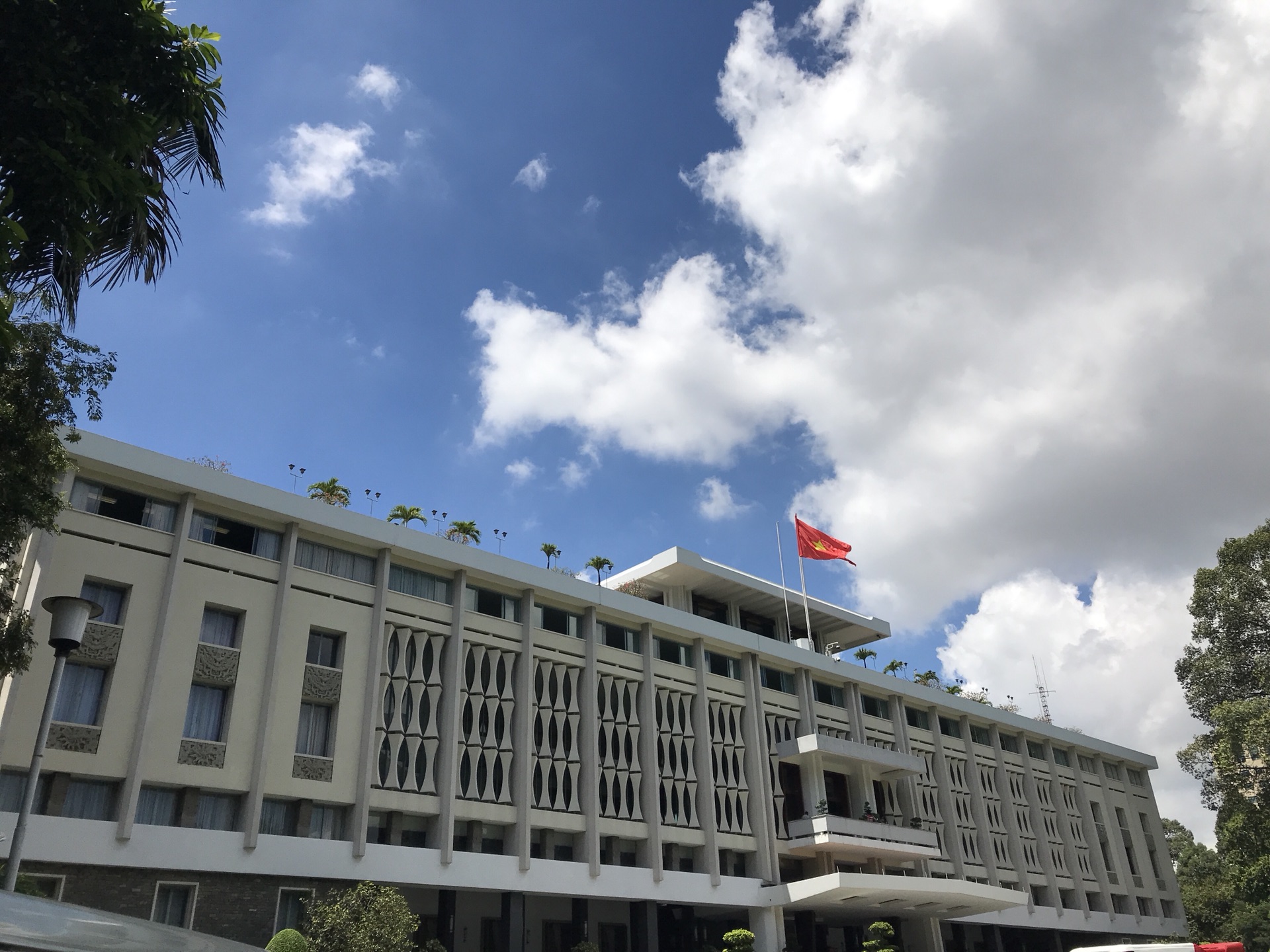 统一宫建于1966年,是一座占地面积达12万平方米的庞大四层白色建筑,前南越政权的总统府所在地。大厦内有100个装饰华美、富丽堂皇的大小厅堂,可满足外交、宴会、娱乐、居住、军事指挥等各种需要。庭院设计和建筑一样采用左右对称的布局,互相呼应,浑然一体。