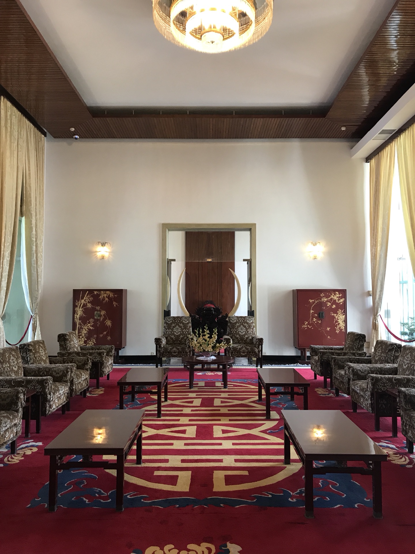 这是胡志明市的政府大楼,全称胡志明人民委员会大厅,是一座具有浓烈法国风格的建筑,于1902年兴建,在1908年落成。市政厅只有二层,线条简洁,屋顶为红色,外墙为黄色,在蓝天白云的映衬下显得格外明艳。这栋建筑设计活泼轻快,细部装饰精美华丽,以西方神话人物和法国英雄人物形象为主要题材的雕塑遍布廊柱、门框、屋檐等部位。由于是政府办公机构,这里并不开放游客入内参观,但市政厅门前有一个小型的广场花园,花园中央有一尊胡志明抱着一个小女孩的塑像。胡志明生平没有结婚也无子女,这座雕像象征胡志明视越南人为儿女,奉献毕生精力亦无怨无悔。