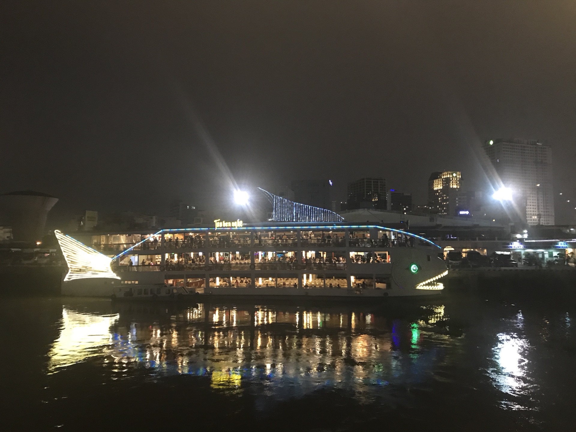 下午在酒店休息后,晚上参加了夜游西贡项目,在飞猪购买了服务,晚上有导游到酒店接到后,直接送到船上,到处是游客。虽然胡志明市不是大型城市,夜景也不比香港上海那么繁华,但是在船上听听音乐看看表演,对着城市灯火也别有风情。