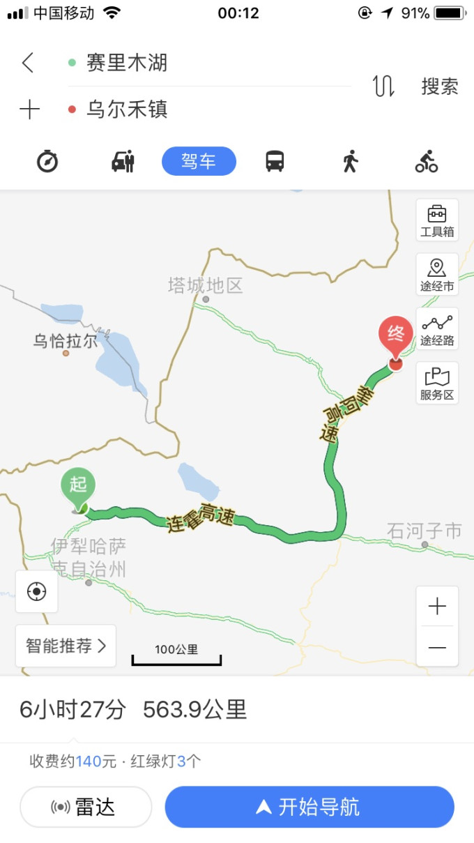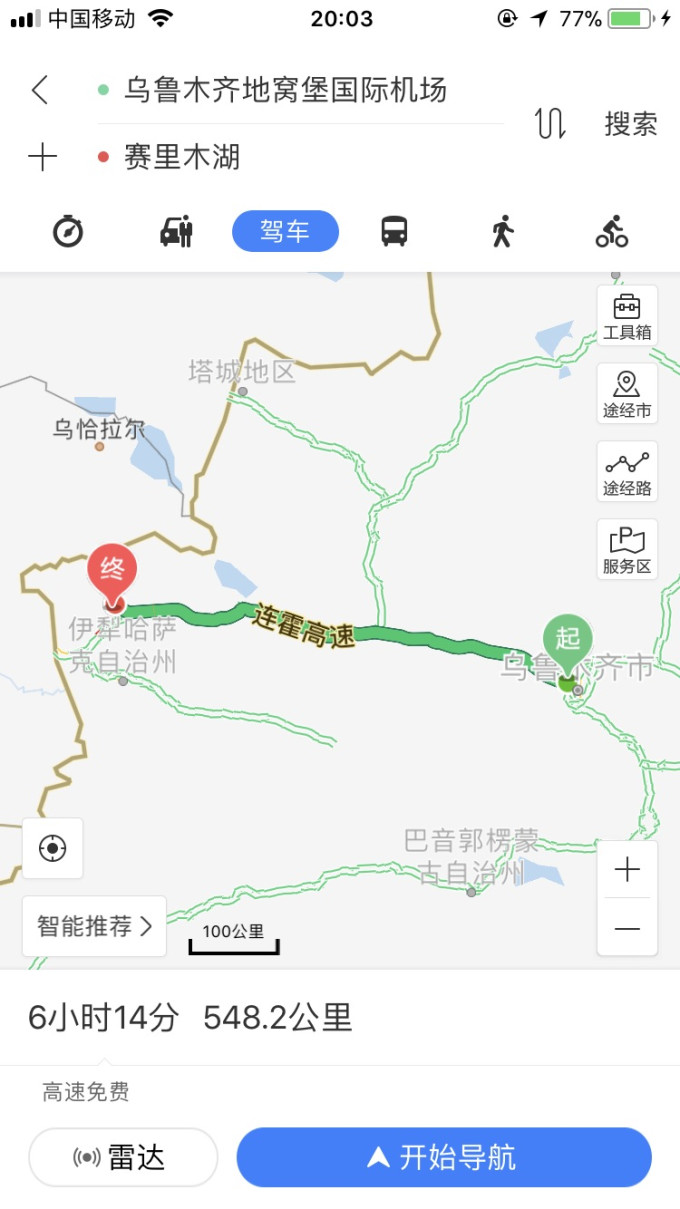 新疆除了克拉玛依、石河子和奎屯,其他地区是没有4g的,我们几乎全程处于Edge网络和无信号的状态,就在我们准备出发的时候,之前在赛里木湖预订的那家湖边唯一的宾馆——龙岭山庄,打电话给我们说赛里木湖突然下雪,高速结冰,建议我们不要前往,尤其是听说我们下午快四点了还没从乌鲁木齐出发,更是建议我们放弃。但你懂的…以一车子交易员的性格,那真是玩的就是心跳