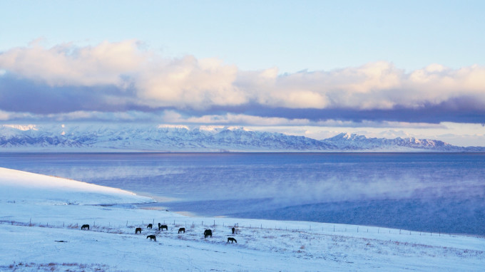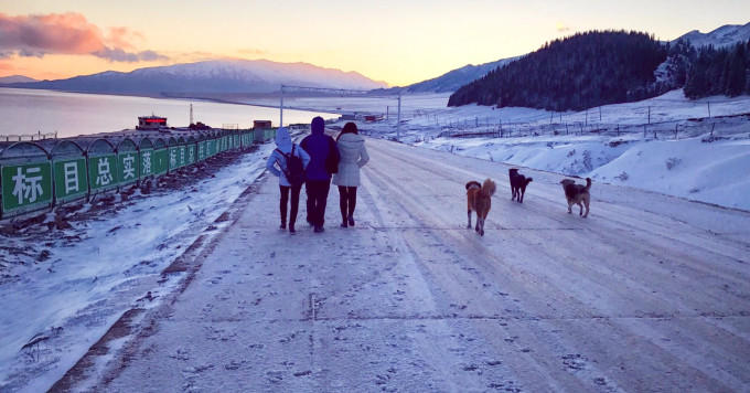 看完日出后,我的手已经被冻僵到按不下快门,走回酒店简单吃了碗泡面就启程正式进入赛里木湖景区。