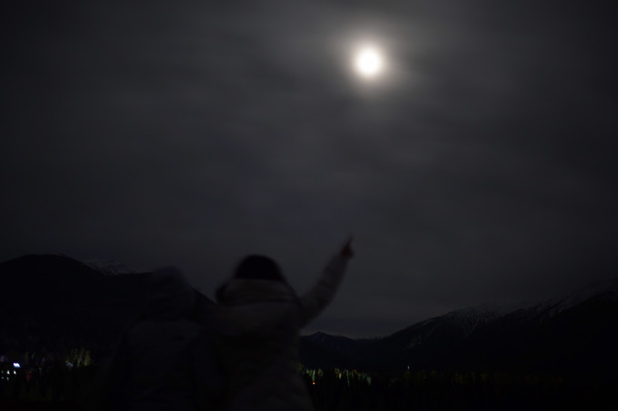 被坑哭的我们几个人看着太阳落山却无能为力,只好去酒店checkin,不过这个阿勒泰接待中心B区有条小路只用走路五分钟就可以到达喀纳斯湖畔,看着月亮也别具一番风情。